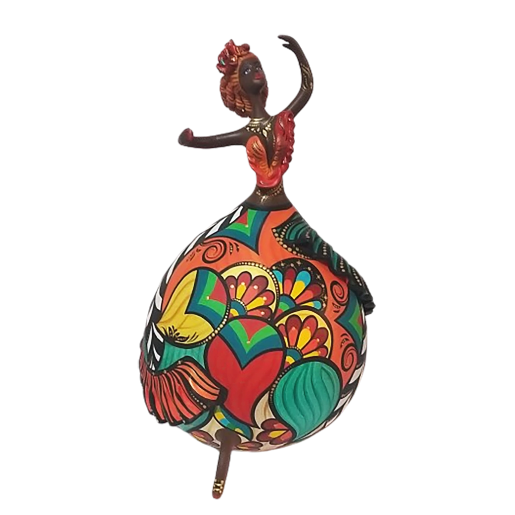 Artista: Letícia Baptista ”Bapi” é de Minas Gerais, sua realização profissional deu-se através das Artes Plásticas e suas esculturas em cabaça lhe deram grande visibilidade no mercado nacional e internacional. Conhecedora de diversas técnicas desenvolveu o seu trabalho através de uma leitura contemporânea, provocando a exigência imediata da beleza e originalidade. Suas bailarinas retratam a cultura e arte do nosso folclore, as cores contrastantes e a sensualidade de seus movimentos, com grande enfoque nas mulatas, baianas e tipos brasileiros. Seu trabalho possui reconhecimento e apreço pelo mundo afora.
