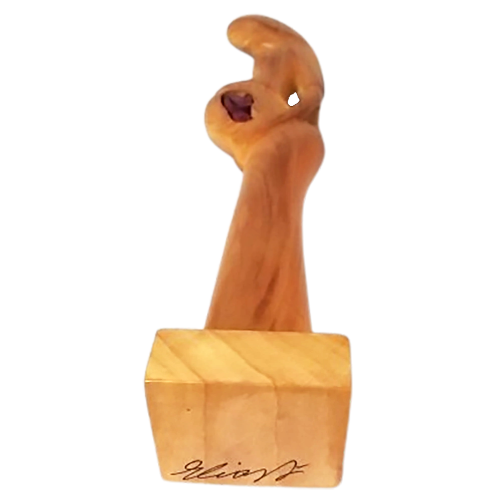 Escultura Amor de Mãe Eterno em madeira natural do Mestre Elias França