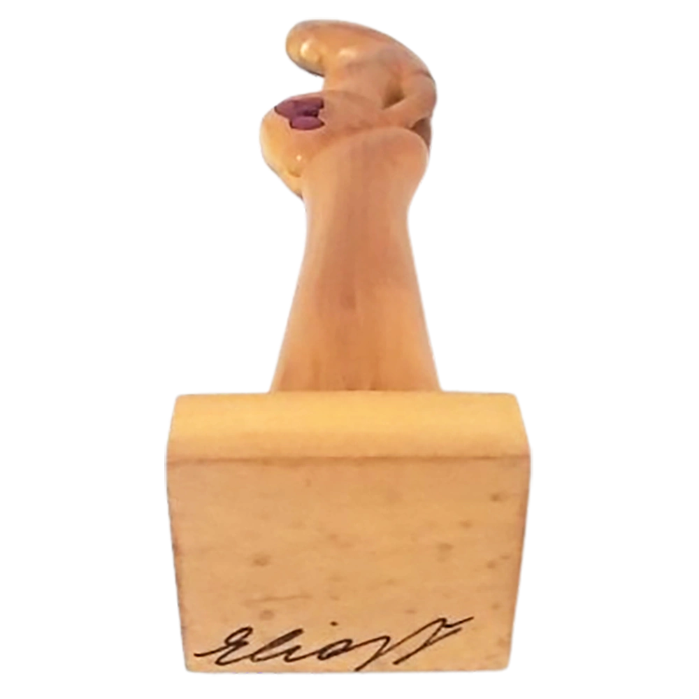 Artista: Mestre Elias José França é natural de Paudalho (PE), mas aprendeu o ofício na Paraíba, estado em que reside até hoje e cria as suas peças. Ao longo da sua trajetória, o artesão tem verdadeiro fascínio pelo processo de produção. Faz tudo, compra a madeira que vem do sertão do Cariri, e ao passo que a peça vai se desenvolvendo e o chão do ateliê fica repleto de lascas de madeira, o brilho no olho do artesão vai aumentando ao observar a peça criando forma. Segundo o artista, “É muito bom pegar um pedaço de madeira in natura, lavrar ela, e ver ela virar uma escultura.” E é com esse sentimento que Mestre Elias vai compartilhando a sua arte.