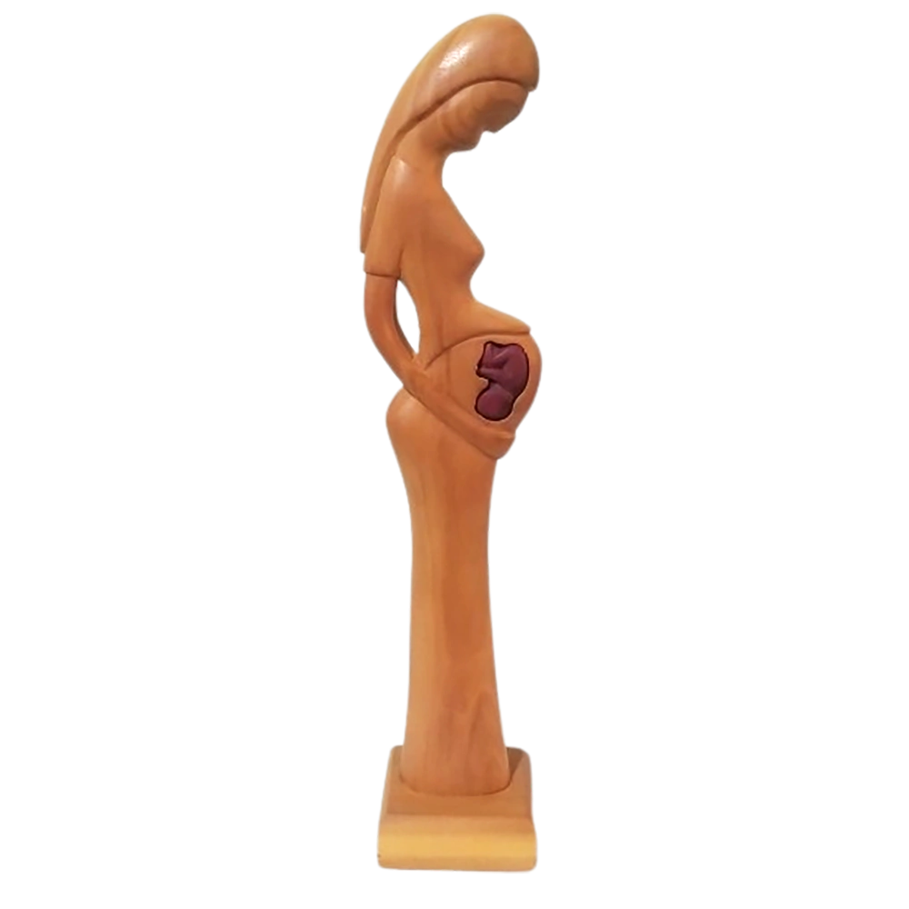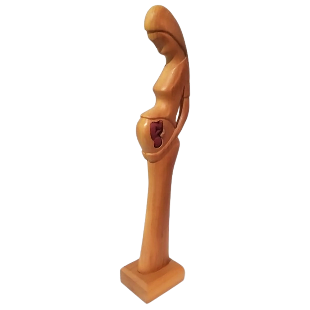 Escultura Atenção Materna Dedicada em madeira natural do Mestre Elias França