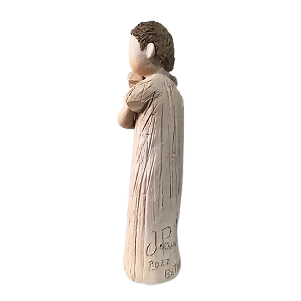 Escultura Pai com Menino Aconchego em cerâmica terracota clara é uma peça única, em tamanho pequeno, feita de forma artesanal pelo artista João Paulo de Souza, da família de Manoel Miguel de Souza, cuja arte de modelar em barro é repassada de geração em geração. Moldada a partir do barro e queimada em forno, a peça retrata um homem em pé, com um menino no colo, segurando firmemente seu carrinho, em um momento singular de amor e atenção maternos. Os trabalhos inspirados na vida familiar expressamo valor da família e do convívio para o brasileiro. Em Minas Gerais, o apelo é ainda maior, ancorado na cultura regional das festas e dos fazeres tradicionais.