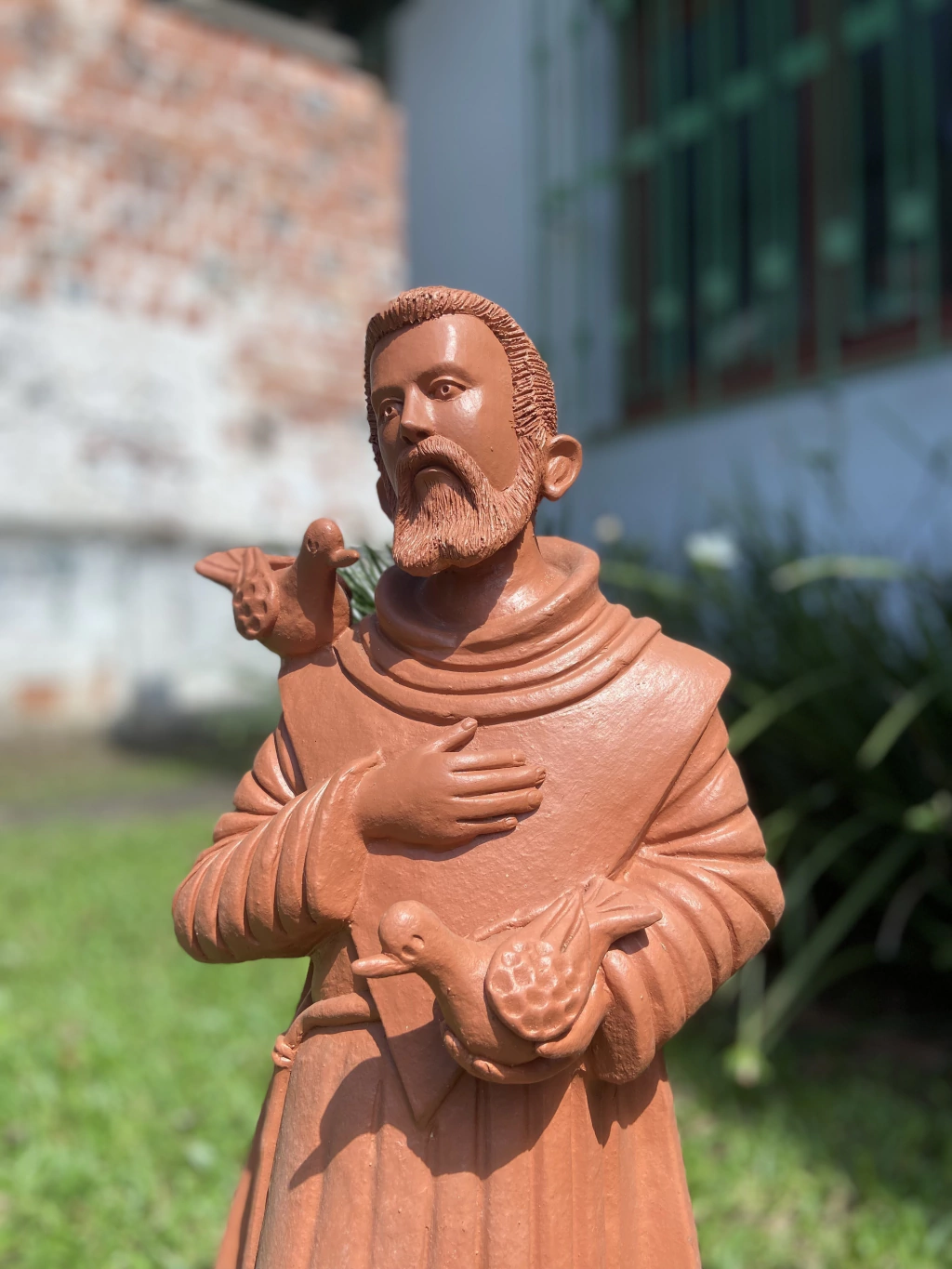 Escultura São Francisco de Mestre Zezinho de Tracunhaém (grande) é uma peça exclusiva, produzida de forma artesanal pelo Mestre Zezinho. A escultura é uma das poucas que restam disponíveis para aquisição de autoria de Mestre Zezinho, falecido em 2019. A peça retrata a figura tradicional de São Francisco, com um pássaro no ombro e outro em sua mão, com a singularidade de traços peculiar do artesão. A escultura foi produzida em barro e queimada em antigo forno a lenha, como é tradição em Tracunhaém.