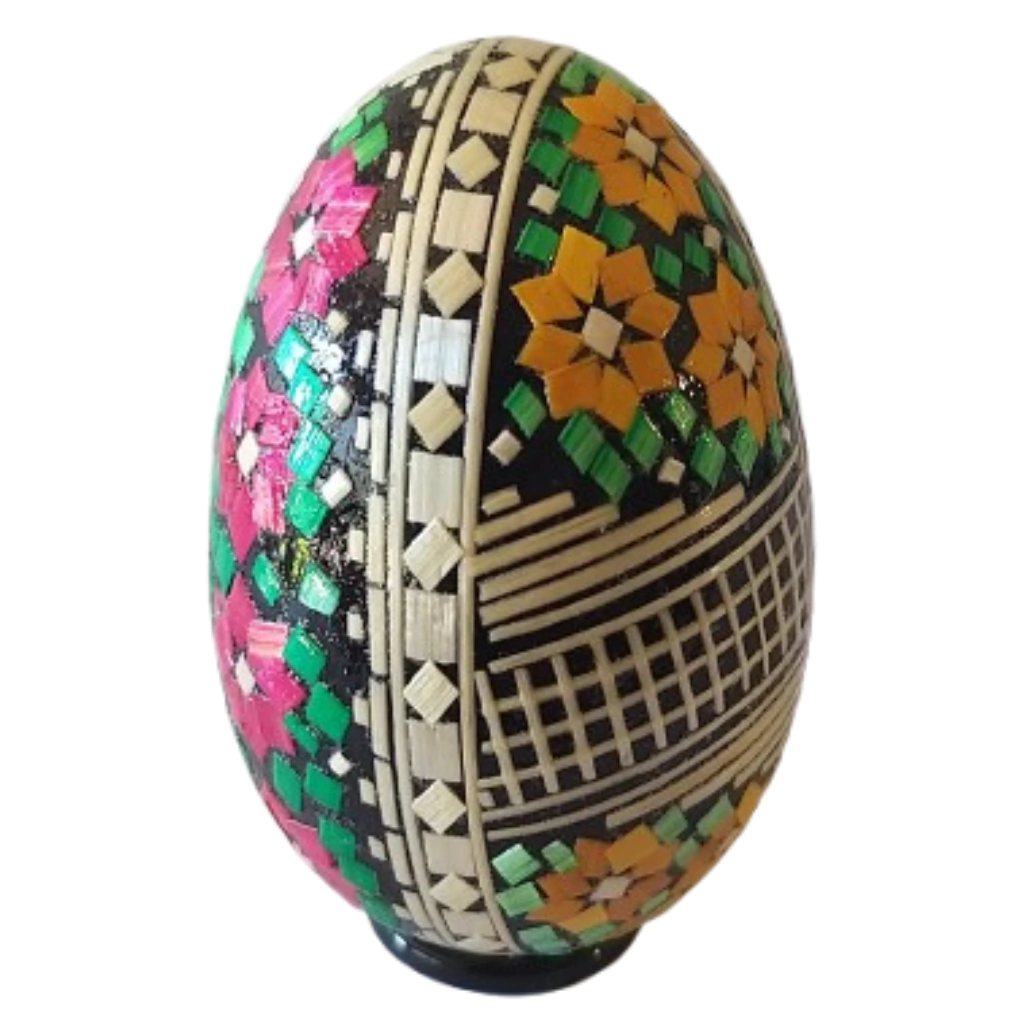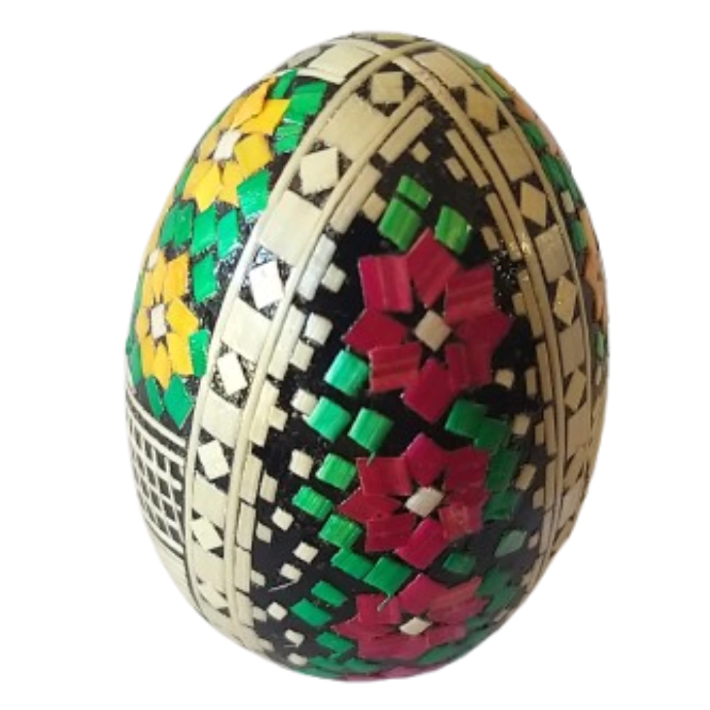 Artista: A inspiração para a arte com a palha de trigo foi uma garrafa decorada vinda da antiga Ioguslávia, terra do primeiro marido de LeonildaStoikovitch. Ela conhecia a palha dos tempos da roça e ficou intrigada e encantada com as imagens formadas pelas finas hastes. Assim como muitos imigrantes que vieram se instalar no sul do país a partir de meados do século XIX, essa arte é de reconhecida origem eslava. Muitos dos padrões e cores são inspirados na cultura dos países do leste europeu, especialmente Ucrânia e Polônia. Em meados dos anos 70 Leonilda começou a desenvolver a técnica da marchetaria em palha de trigo unindo seus conhecimentos com a inspiração vinda da antiga Iugoslávia. Nesses mais de trinta anos já chegou a ter 23 artesãs registradas trabalhando juntas. Hoje LeonildaStoikovitchtrabalha com o marido João, o filho Wiliam, Simone e Silvana, que estão desde o início dos trabalhos. Simone é responsável pela criação dos desenhos feitos com a palha em tom natural, já Silvana preenche os espaços restantes com variações de cores e formas como folhas, flores e pequenos losangos.