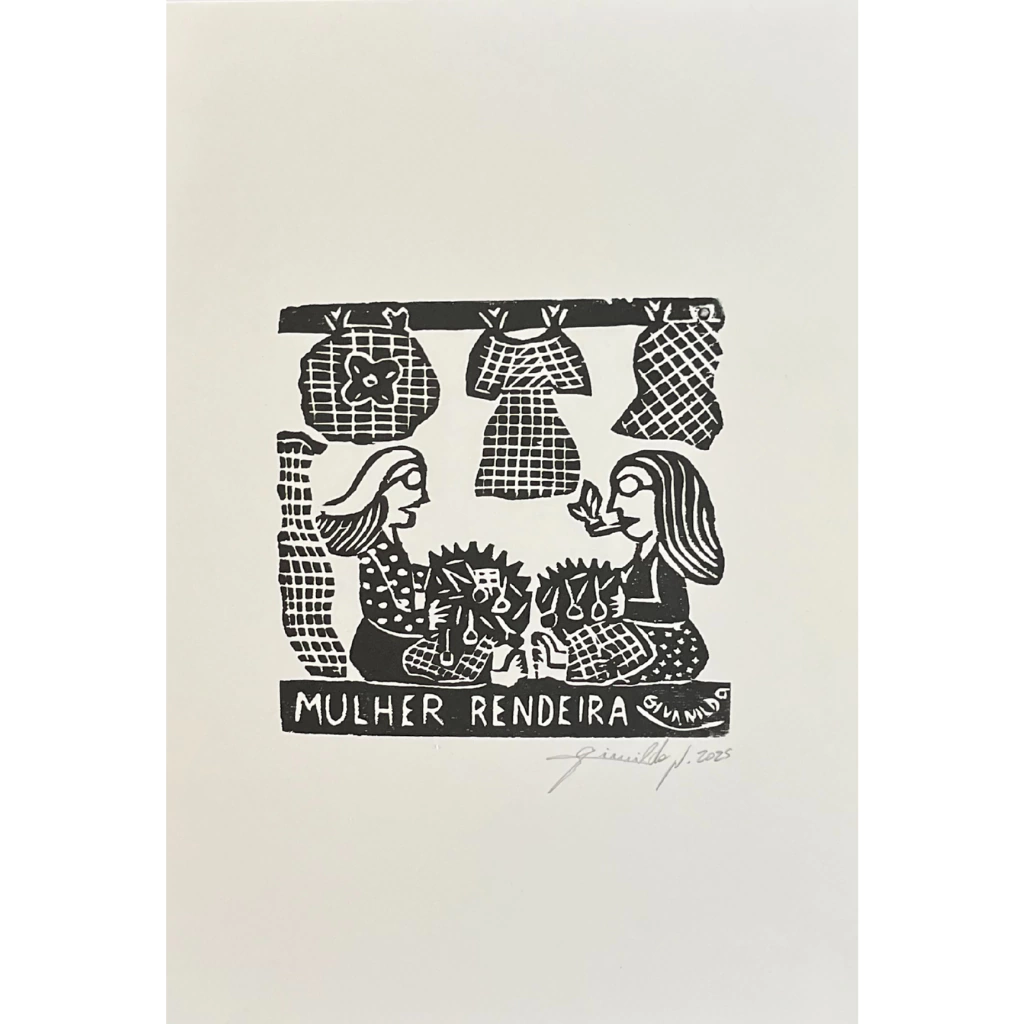 Xilogravura Mulher Rendeira em Preto é uma homenagem artística à cultura nordestina, retratando a tradicional mulher que domina a arte da renda. Esta peça artesanal celebra o trabalho manual e a beleza das rendas feitas à mão, símbolo da resistência e da identidade cultural do Brasil.